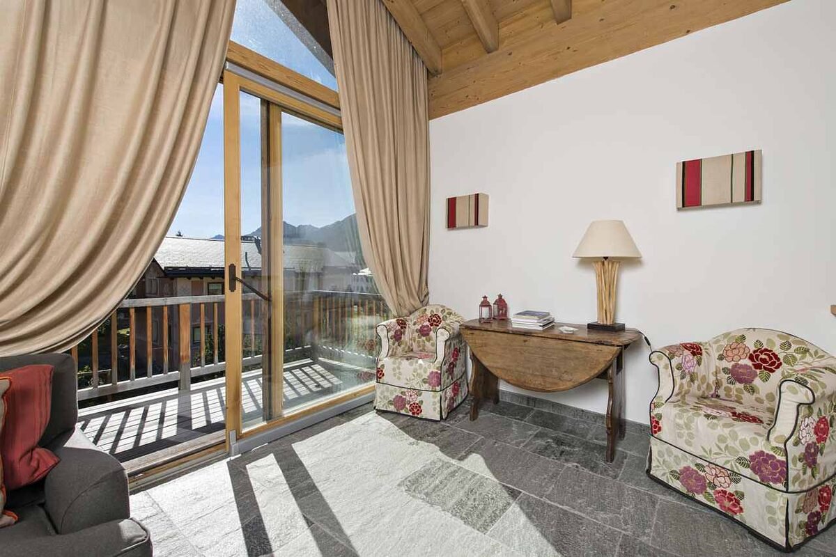 The property features comfortable living spaces, including a bright lounge area with fireplace, a fully equipped kitchen, and inviting dining areas designed for convivial moments. Large windows and outdoor spaces provide beautiful views of the surrounding alpine landscape, creating a perfect balance between indoor comfort and nature.